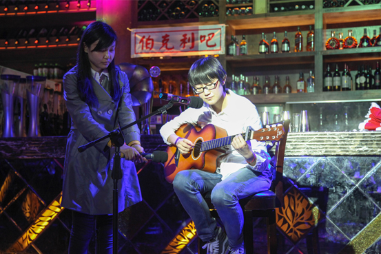 图为青岛公司吉他弹唱