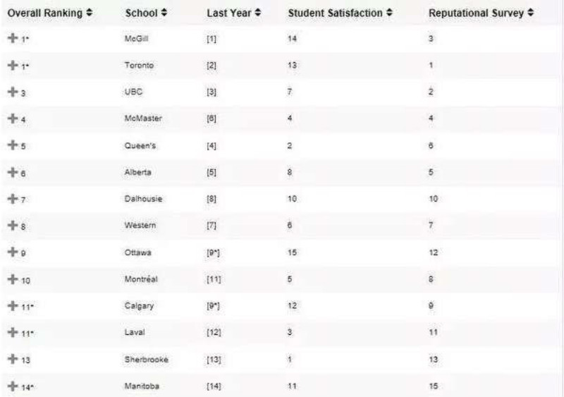 1.麦吉尔大学(McGill);并列第1.多伦多大学(Toronto);