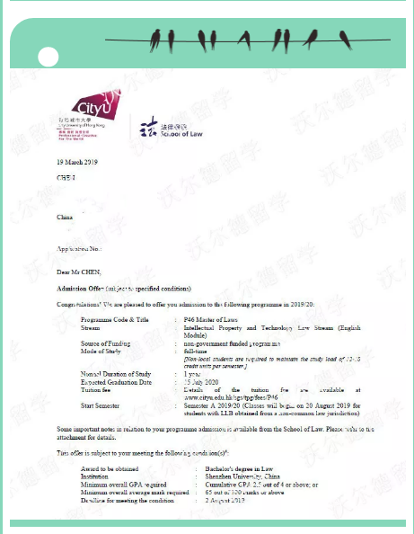 恭喜深圳大学陈GP同学获香港城市大学(香港八大名校)法律类专业录取!