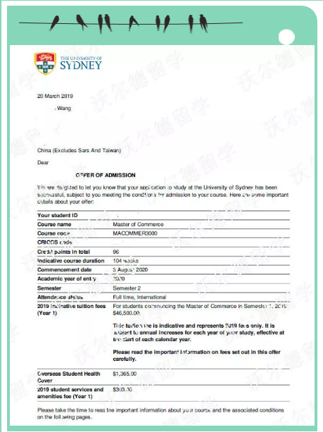 恭喜UIC吴YW同学获悉尼大学(澳洲八大名校)商科类专业录取!
