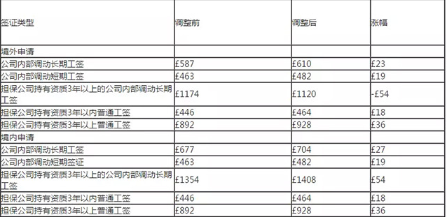 1)工作、学生、访问签证,以及入籍、永居和家庭成员的同类申请,费用一律上调4%;